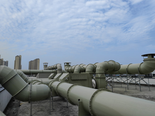 測試室進行排放物 → 生物炭過慮器 → 引風機電機 → 進行排放